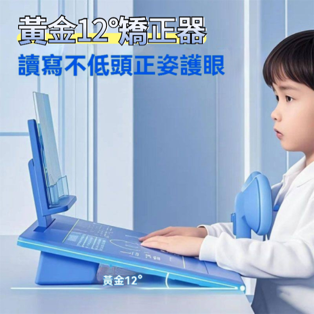 【黃金12°書寫角度】寫作業彎腰駝背?看書東倒西歪?擔心孩子脊椎側彎、視力下降?快試試這個孩子健康成長的好夥伴!升級款三維一體,專為兒童設計桌面黃金12°設計,符合科學用眼視覺新標准,自帶塾板正姿圖,開讀架可45°調節可根據身高調節高度,放下即用!
